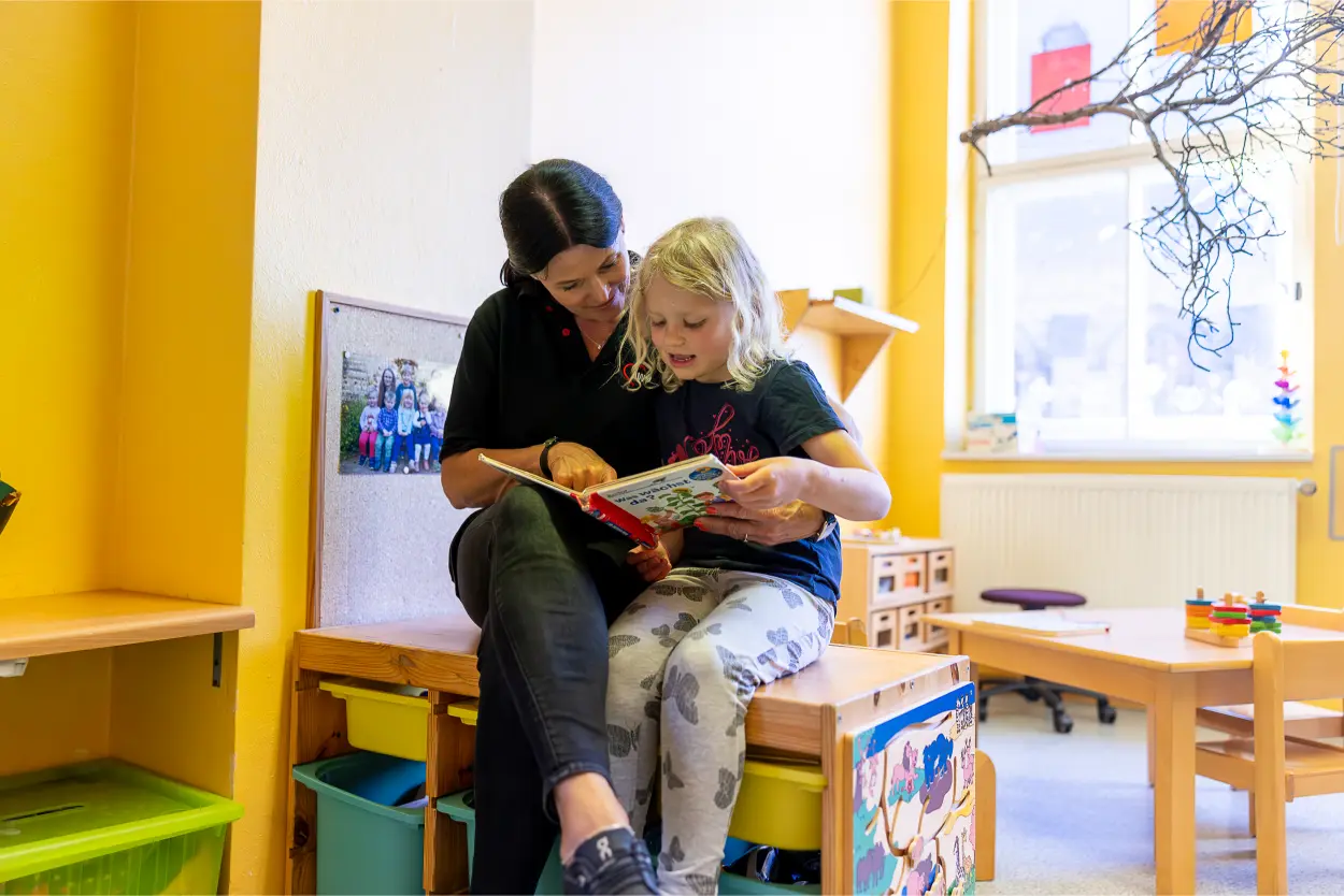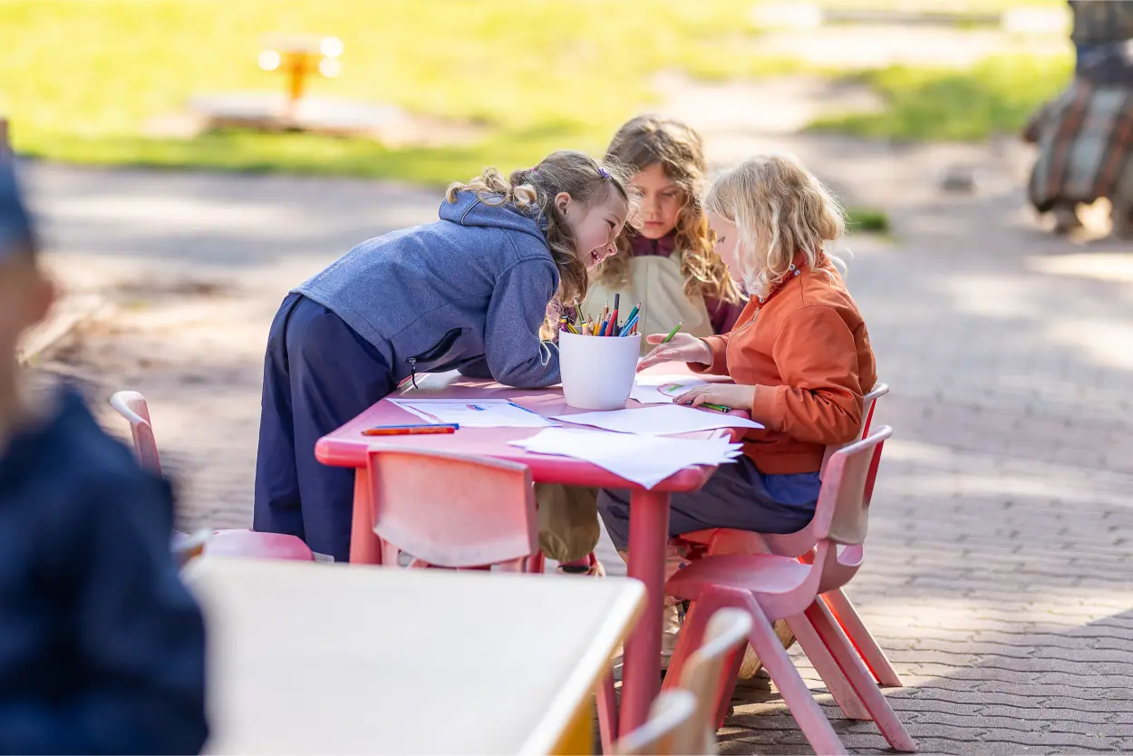 Drinnen wie draußen bieten wir vielfältige Lern- und Erlebnisräume: gemütliche Leseecken laden zum Zurückziehen und Vorlesen ein, während unsere Forscherecken und das Aquarium kleine Entdecker*innen begeistern. Auf unserem großen Außengelände mit naturbelassener Grünfläche und Kinderwerkstatt ist immer was los – Spielen, Staunen, Matschen und Bewegen stehen hier täglich auf dem Programm.