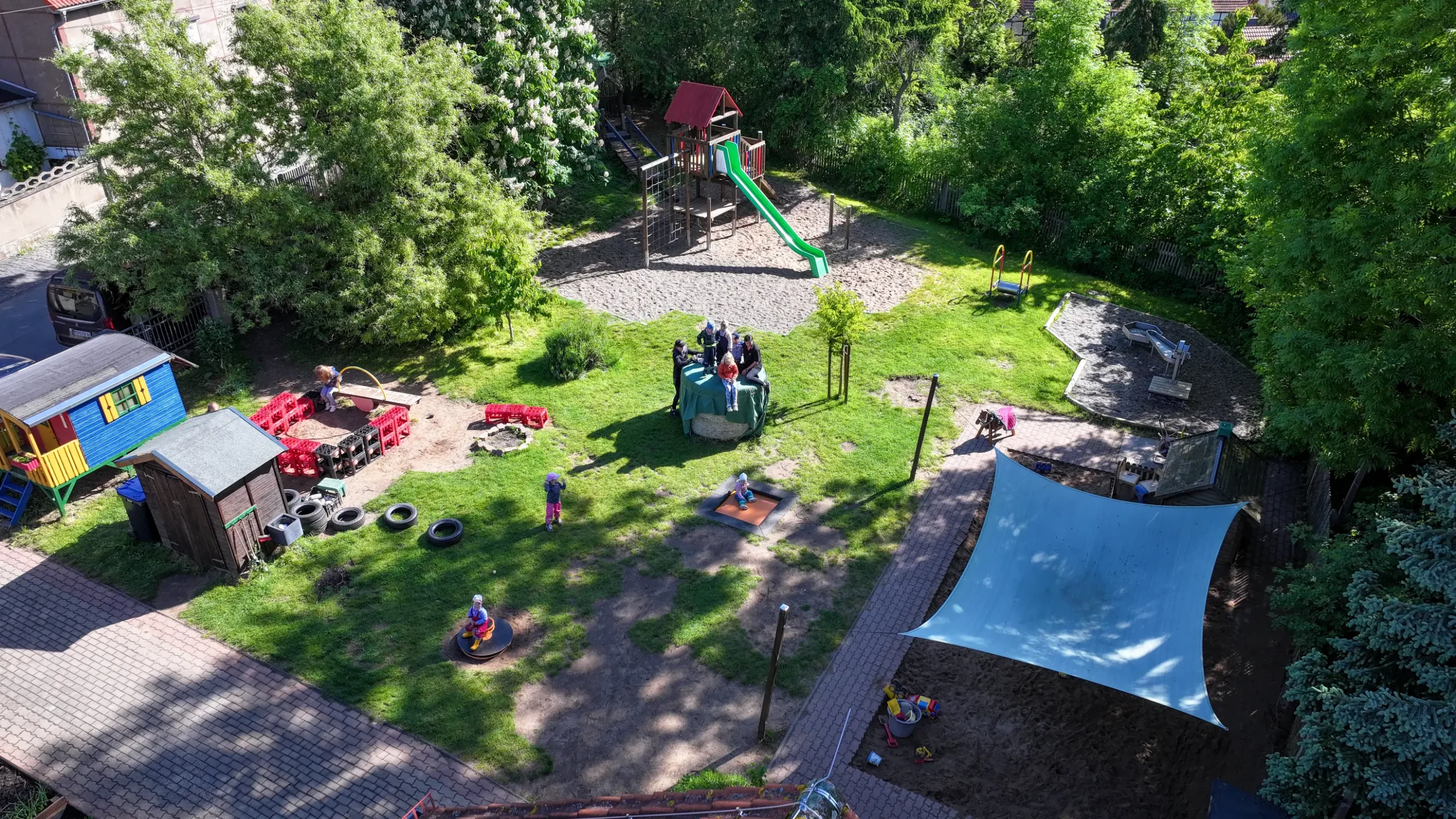 • Großes, naturbelassenes Außengelände – mit Kinderwerkstatt, viel Platz für Bewegung und kreatives Spiel
